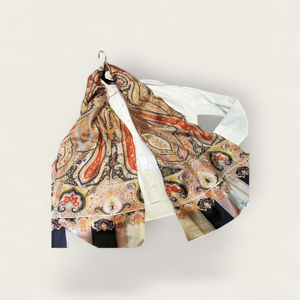Découvrez l'élégance intemporelle de l'Écharpe en soie Sable Nomade - Le Compagnon Idéal pour Toutes Vos Tenues